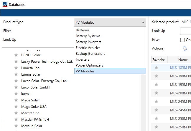 Our extensive product database includes over 30,000 PV modules, 9,000 inverters, 13,000 battery systems and many other products such as electric vehicles and performance optimizers. It is updated regularly by the product manufacturers themselves, so you can always work with the latest data.
