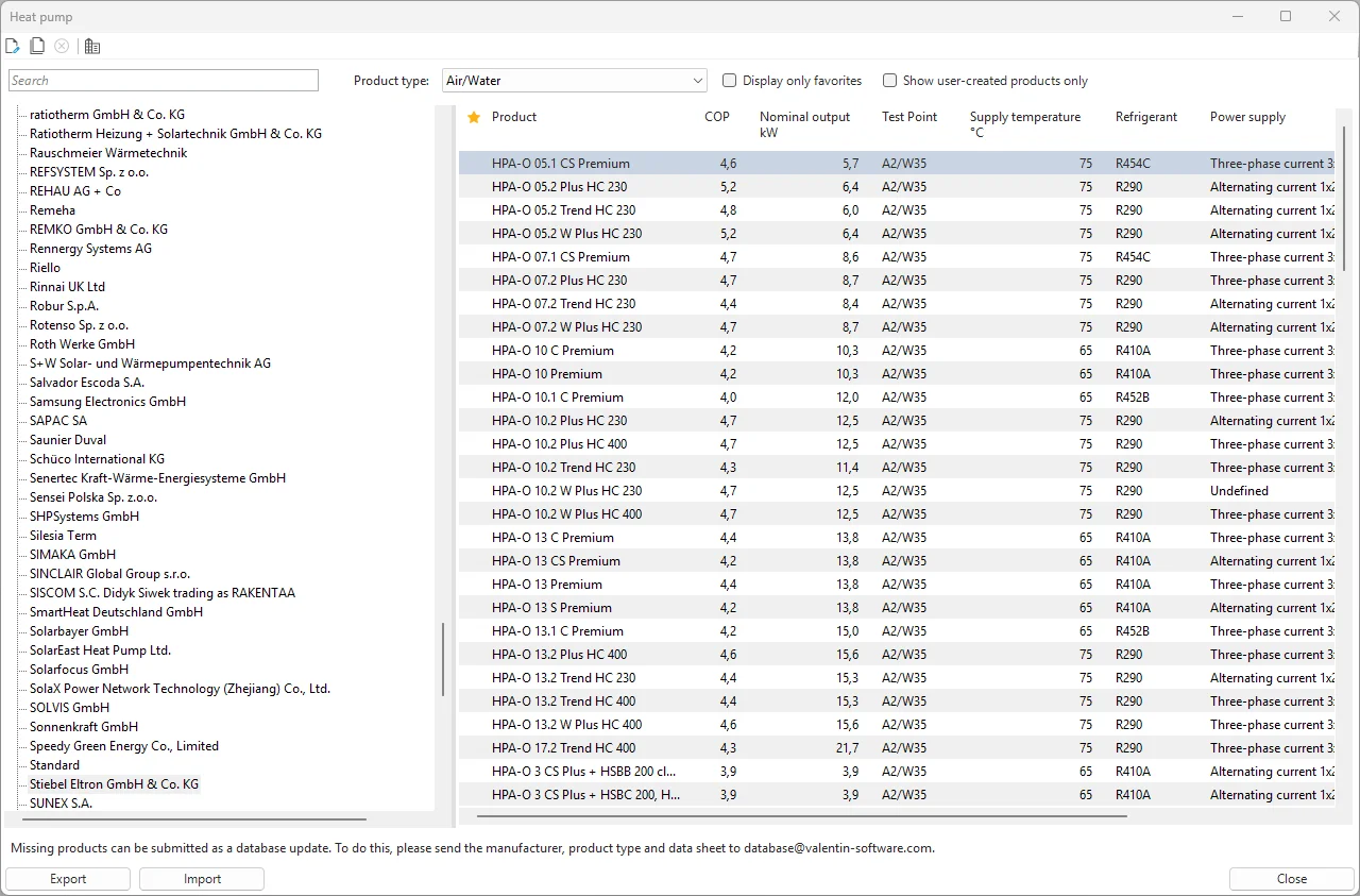 In addition, manufacturers can have additional storage tanks, boilers, collectors and heat pumps added free of charge. Contact: database@valentin-software.com