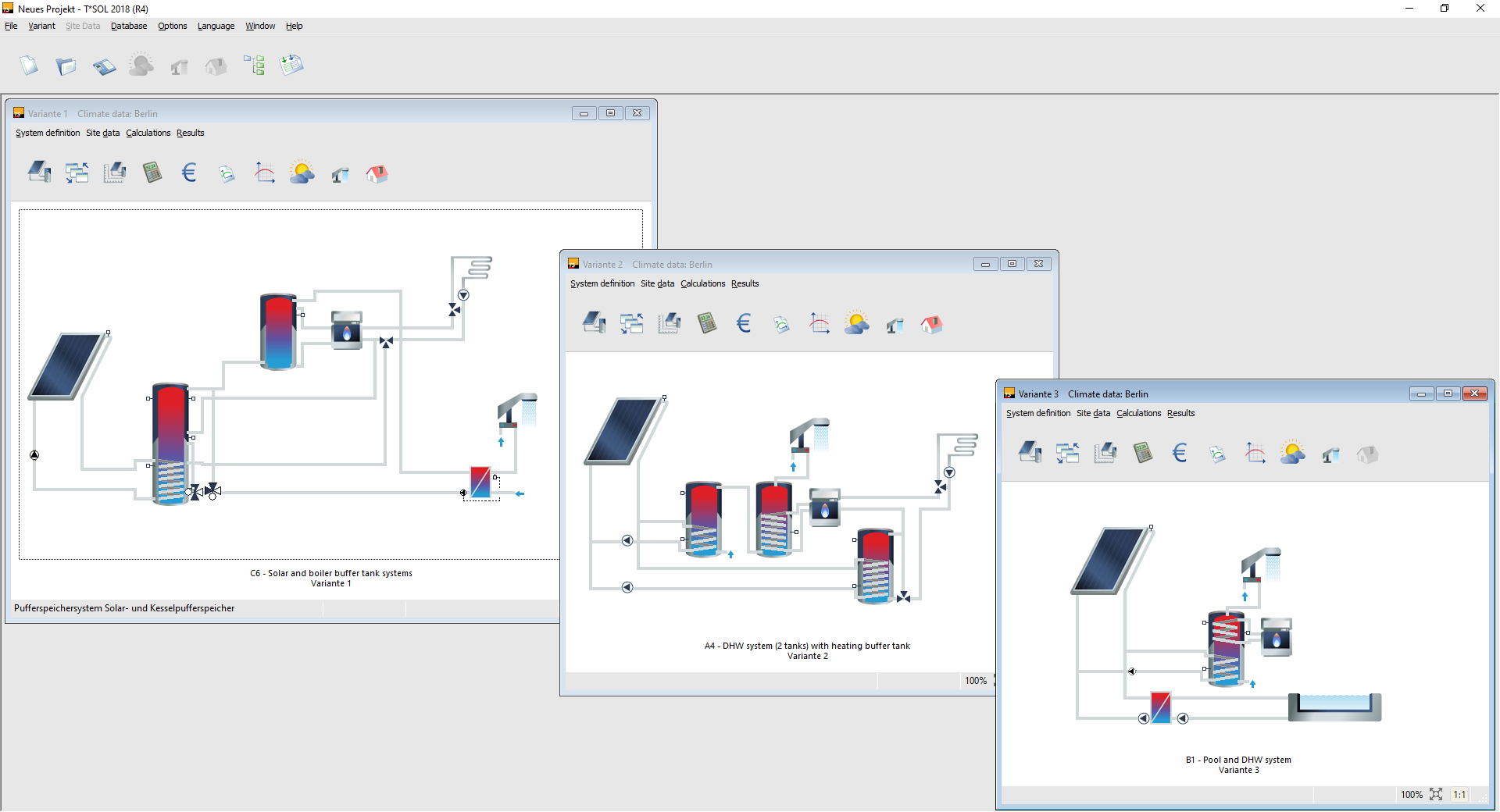 In addition, manufacturers can have additional storage tanks, boilers, collectors, fresh water stations and heat exchangers added free of charge (contact: database@valentin-software.com).